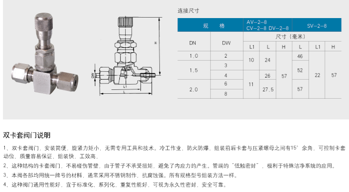 SV-2-8雙卡套直通閥